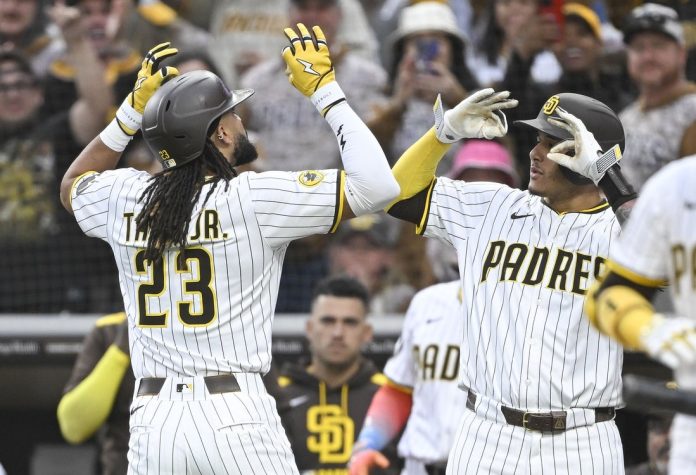 Tatis got a run back right away, lining his fourth leadoff homer of the year and 13th homer overall inside the right field foul pole. The Padres sliced the deficit to 6-3 in the second on Tyler Wade’s RBI single and Simon’s throwing error.