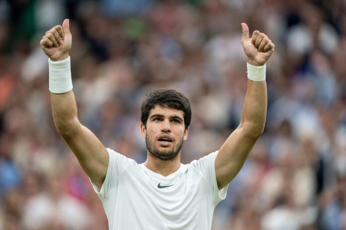 Alcaraz won his first grass-court tournament at the Queen’s Club Championship on June 25.