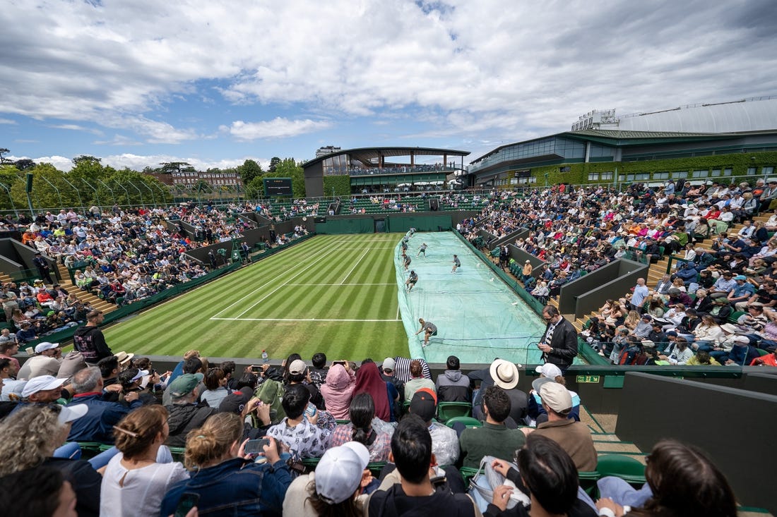 They were charged with aggravated trespass and criminal damage, according to a post from the Wimbledon Twitter account.