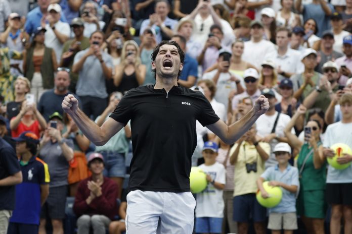 No. 12 seed Taylor Fritz delivered 24 aces and reached the U.S. Open quarterfinals for the second straight year by notching a 3-6, 6-4, 6-3, 6-2 victory over No. 8 Casper Ruud of Norway in afternoon action.