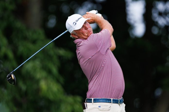 Retief Goosen and Thongchai Jaidee are two shots back at 7 under, followed by a trio of golfers at 6 under that includes all-time Champions Tour victory leader Bernhard Langer, Darren Clarke and Tommy Gainey.