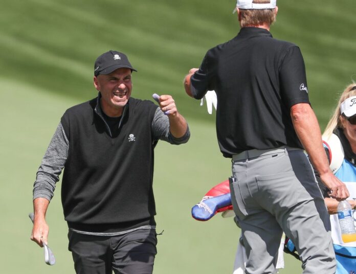 Mediate holed out for eagle at the par-4 third at Tiburon Golf Club to kickstart his day. After adding four birdies to go out in 6-under 29, Mediate’s only misstep was a bogey at the par-4 13th, which he erased by birdieing the next four holes.