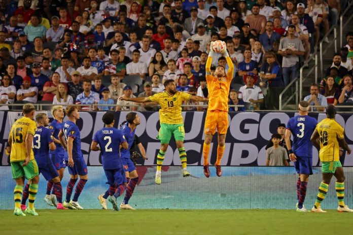 Brandon Vazquez came off the bench to score in the 88th minute as the U.S. men’s national team salvaged a 1-1 draw with upset-minded Jamaica on Saturday in the first match of the CONCACAF Gold Cup in Chicago.