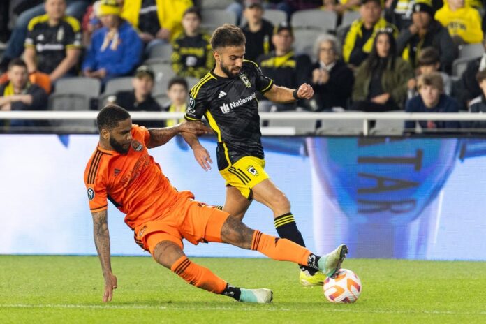 Cucho Hernandez’s 40th-minute goal put Columbus in a comfortable position, and the Crew advanced in the CONCACAF Champions Cup quarterfinals after a 1-1 draw with the visiting Houston Dynamo on Tuesday.