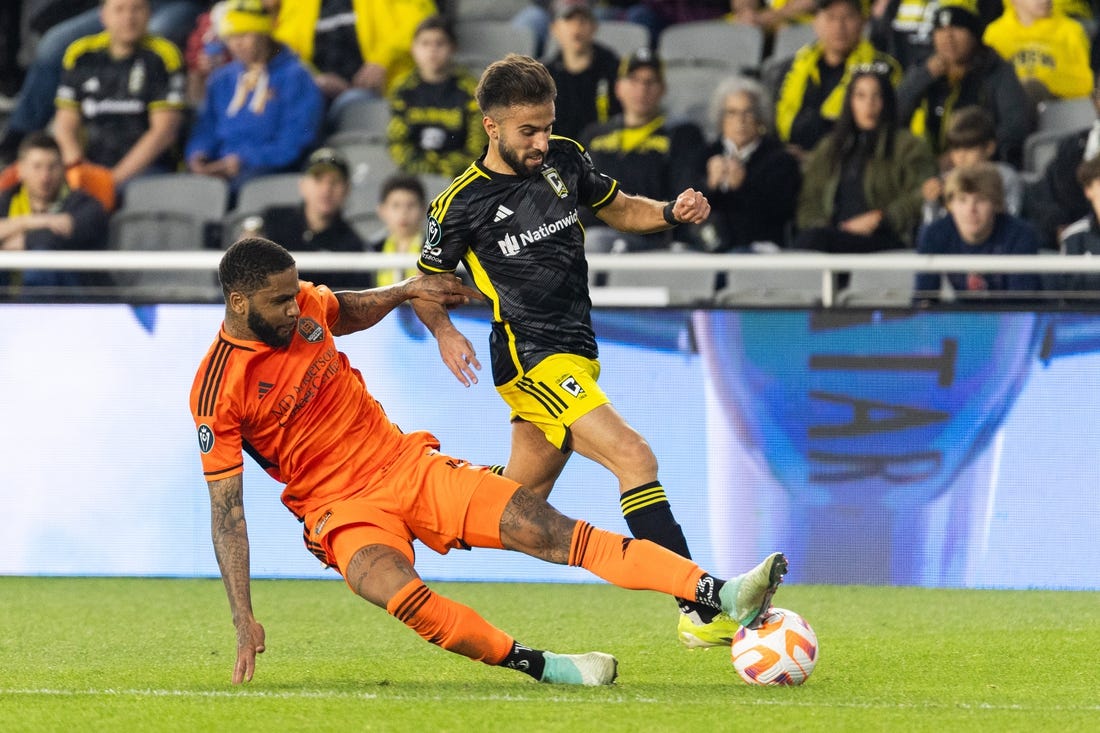 Late in the first half, Columbus’ Christian Ramirez sent a long pass to Hernandez on the left flank. Hernandez cut inside in the 18-yard box, then sent a shot between the legs of a Houston defender and past goalie Steve Clark at the near post.