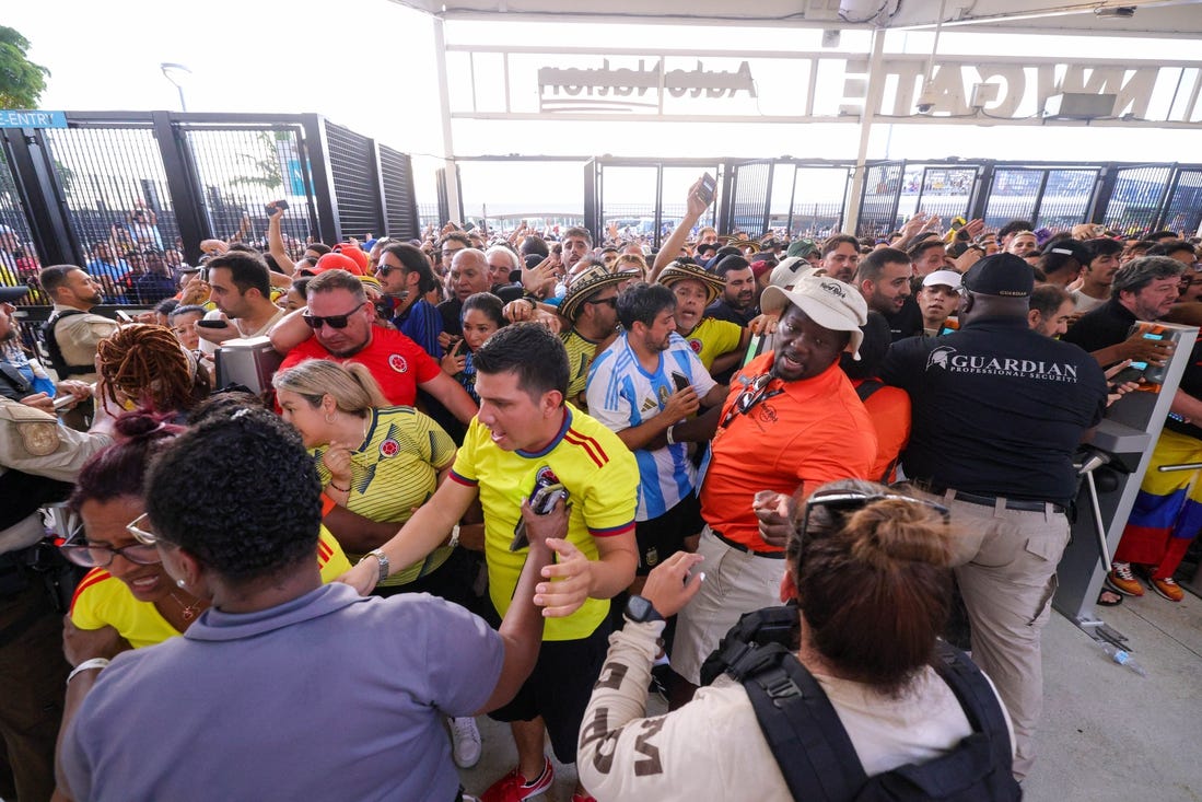 “(Sunday), the most challenging tournament in history organized by CONMEBOL together with CONCACAF concluded, reaching record figures in venues, attendance, audience and staff dedicated to its organization, with more than 42,000 collaborators,” CONMEBOL’s statement said. “As it is already known, during the final held in Miami, fans without tickets went to the stadium’s vicinity, which delayed the normal access of people who did have tickets, slowing down the entry and leading to the closure of doors.