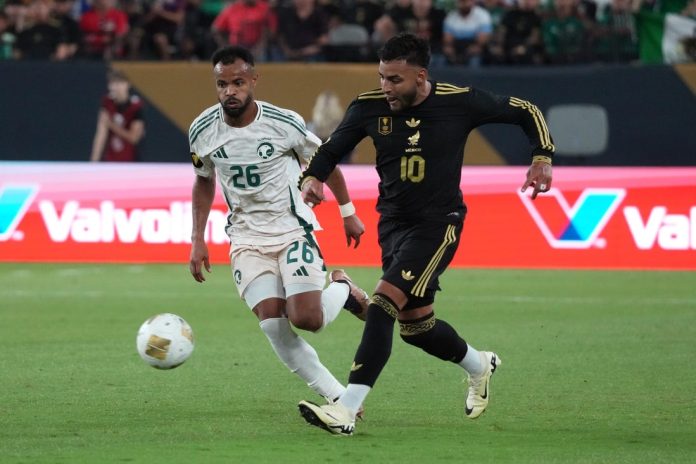 Alexis Vega got Mexico on the board in the 49th minute after his initial shot was stopped by Saudi Arabia goalkeeper Nawaf Al-Aqidi. Vega put in the rebound and the goal was confirmed following a VAR review that there was no offside violation.