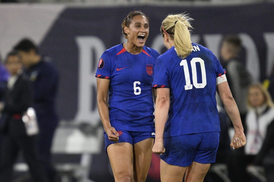 Horan’s heavy header was the breakthrough the Americans needed just before intermission. Emily Fox sent a cross toward the far post, where Horan was 6 yards out from the goal to outjump two defenders. She had three goals in the tournament.