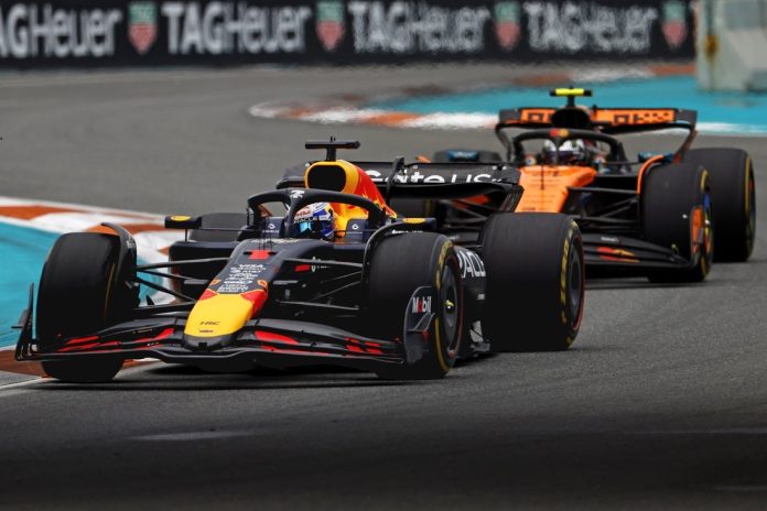Red Bull had removed the tape on previous occasions, according to a report by The Athletic, which is legal under Formula 1’s sporting regulations. McLaren had begun using a type of tape that is more difficult to remove, and the fine was assessed for the Red Bull team member entering a prohibited area after the formation lap had begun.