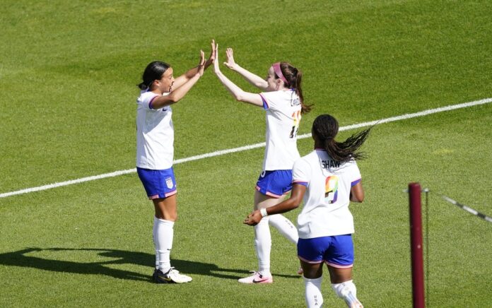 Davidson extended the lead to 2-0 off a right corner kick by Catarina Macario, who played her first match for the U.S. in 725 days following her recovery from ACL surgery. She made her first start since April 12, 2022.