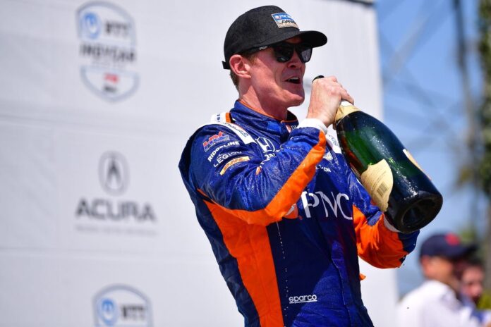 Scott Dixon conserved fuel efficiently to hold off Colton Herta and win the IndyCar Series’ Acura Grand Prix of Long Beach on Sunday in Long Beach, Calif.