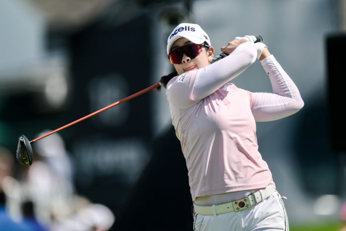 A Lim Kim’s solid round nearly had a spectacular moment on the par-3 fourth hole. Her tee shot landed inches away from the cup.