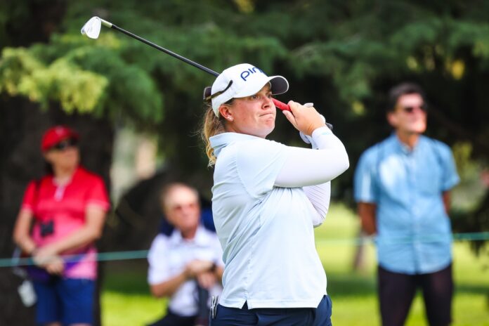 At the hockey-themed “rink hole,” a Canadian tradition featuring boisterous fans, Coughlin hit her tee shot to the front-left portion of the green. It rolled over a slope and stopped pin-high at the back hole location, leaving her a makeable birdie she was able to convert.