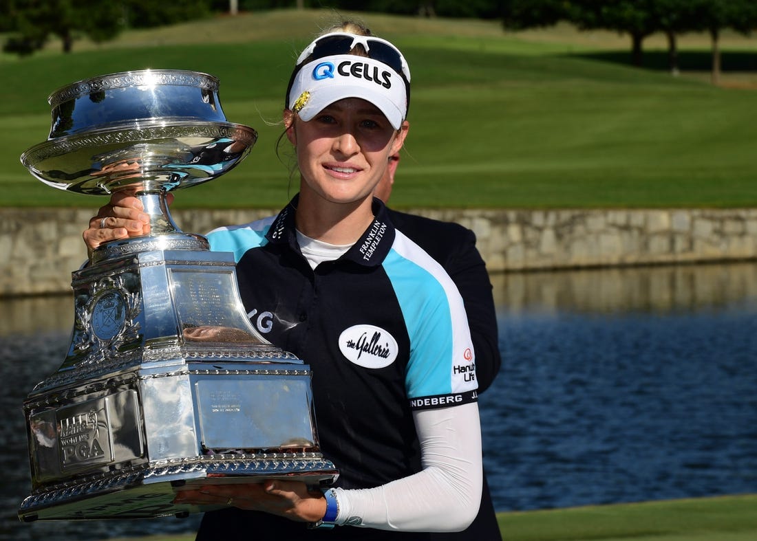 Nelly Korda is the defending Women’s PGA champion. She captured her first major tournament victory last year at Atlanta Athletic Club, beating Lizette Salas by three strokes.