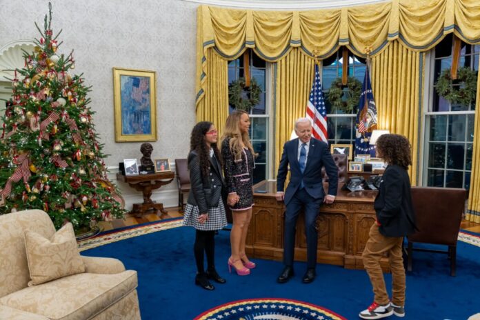 The Queen of Christmas, Mariah Carey, is a well-known celebrity who posted pictures from her visit to the White House on Wednesday. She brought her 12-year-old twins, Moroccan and Monroe, with her, and during the momentous visit, the two of them posed for pictures at the Oval Office with President Joe Biden.