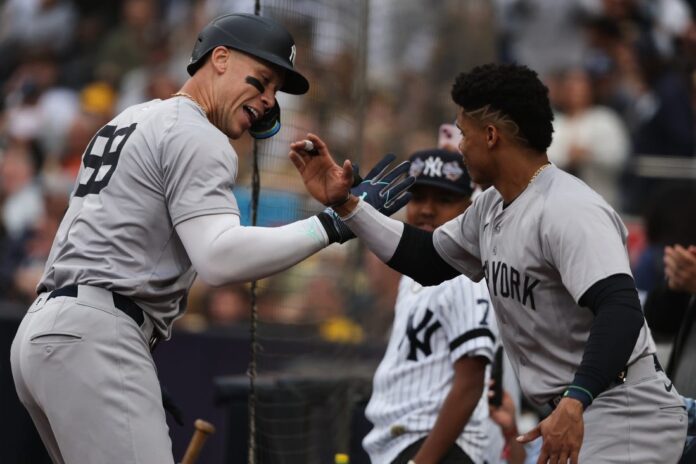 Anthony Volpe led off the game with a first-pitch single off Padres right-hander Dylan Cease (5-4). It extended Volpe’s hitting streak to 18 games.