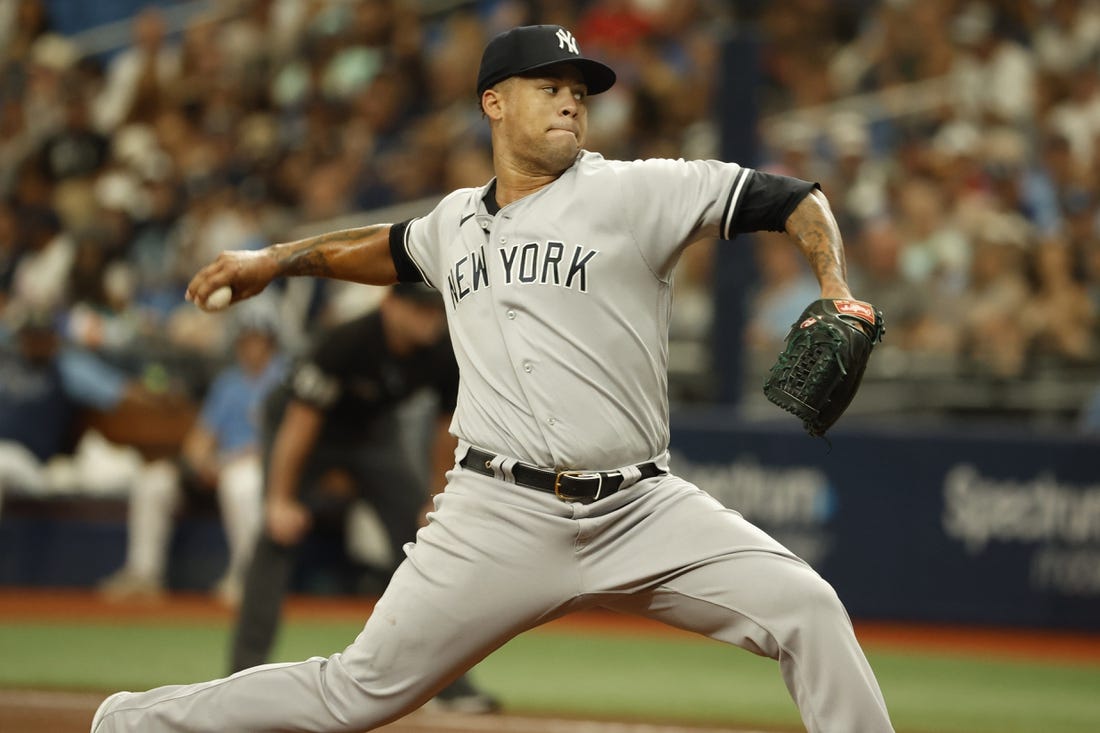 Frankie Montas (5-11) allowed a single in the third to Yandy Diaz and pitched five innings for his first win since joining the Yankees from the Oakland Athletics at the trade deadline. Montas struck out seven, walked none and worked around two errors.