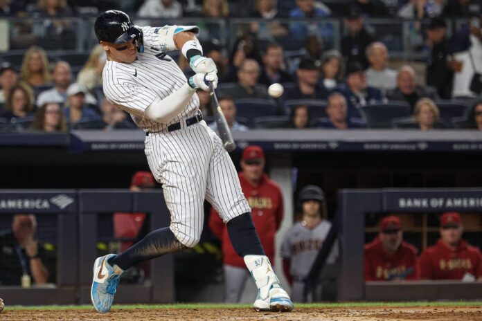 Judge’s first homer gave the Yankees a 3-0 lead. Two batters after Pfaadt committed an error by misplaying Oswald Peraza’s comebacker, Judge lifted a first-pitch sinker into the New York bullpen in right-center.