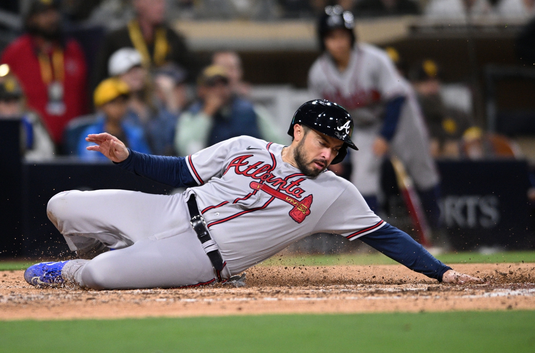 Austin Riley started the rally with his second hit of the game, a one-out single off Johnson. With two out, Riley broke for second and Travis d’Arnaud lined a single to right center through the hole vacated by Padres’ second baseman Jake Cronenworth.