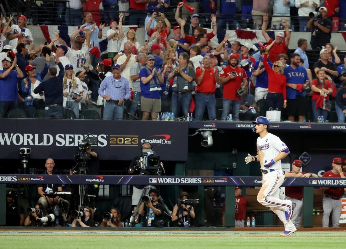 Corey Seager belted a game-tying, two-run homer in the ninth inning and Garcia went deep in the 11th to give the Texas Rangers a 6-5 victory over the Arizona Diamondbacks in Game 1 of the World Series on Friday in Arlington, Texas.