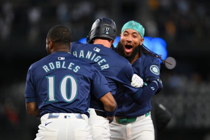 Haniger blooped the ninth pitch of the at-bat into right field, scoring automatic runner Luke Raley, who homered earlier, from second.