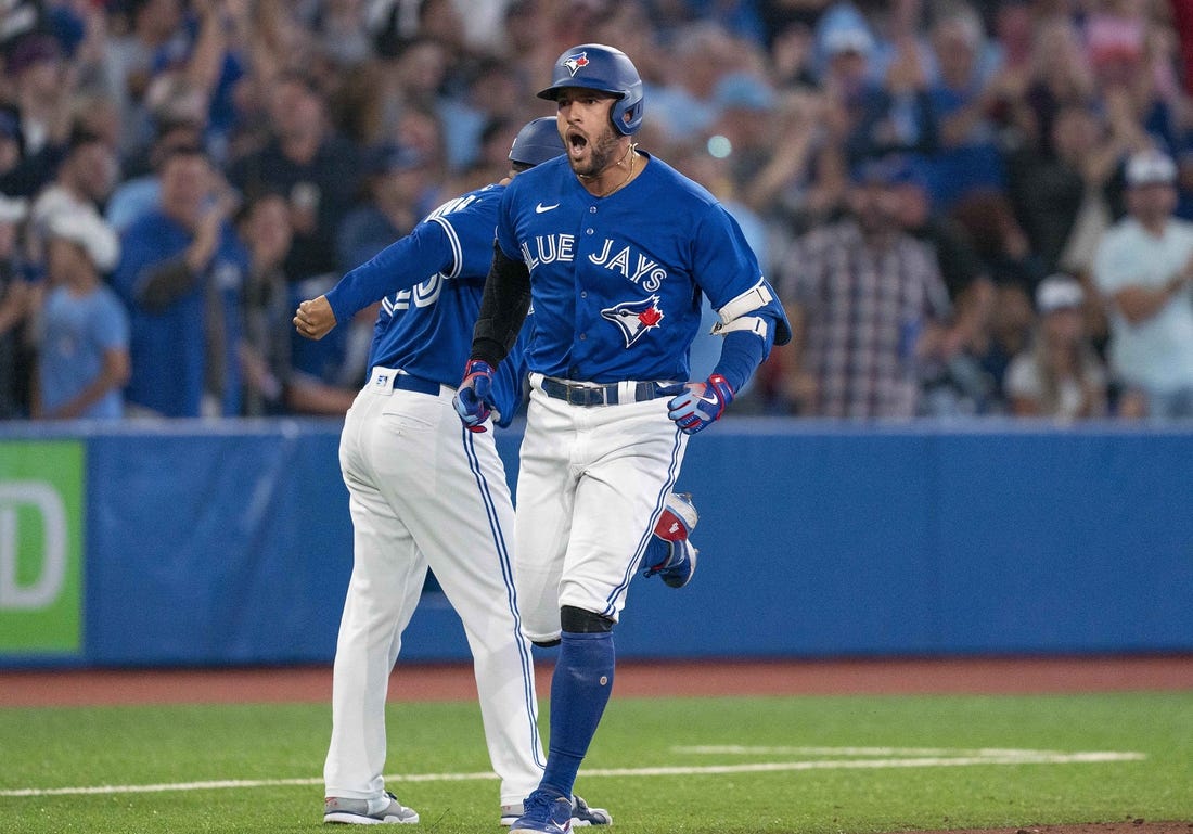 George Springer hit a two-run home run for Toronto earlier in the seventh inning of Game 2. It was his 20th of the season and his first since Aug. 28, a span of 15 games.