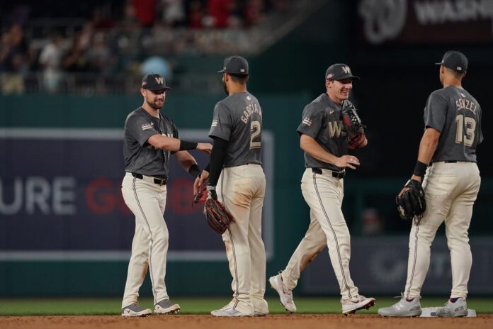 Washington, which has won six of seven, took the series opener 8-1 on Friday night behind seven strong innings from MacKenzie Gore, who was shoved by third baseman Nick Senzel after the top of the second inning.