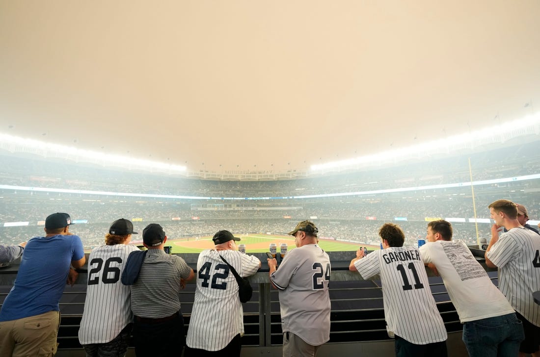 The Yankees and White Sox played Tuesday night through a haze that was visible through the stadium lights. Conditions deteriorated Wednesday with heavy smoke creating an orange glow at times around Yankee Stadium.