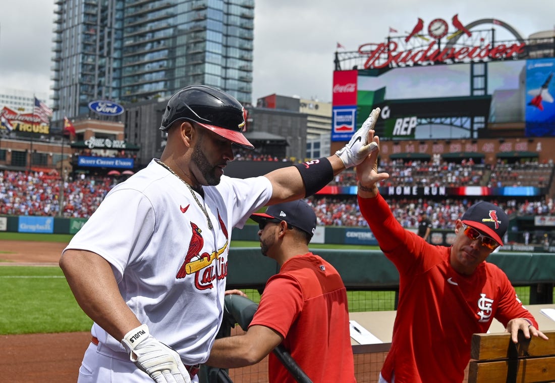 After Carlson hit his eighth homer with one out in the eighth inning, O’Neill reached on an infield single and advanced to second base on a throwing error. Paul Goldschmidt walked and, one out later, Pujols hit a three-run homer to make it 6-2, his 10th blast of the season.