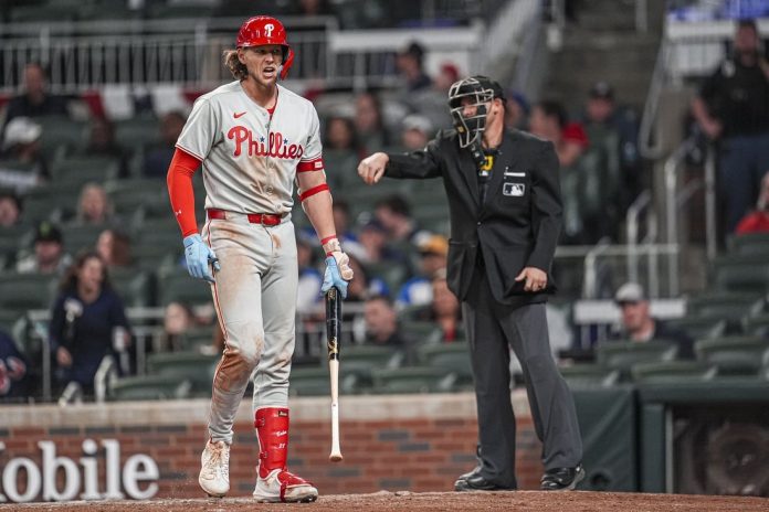 The major exception to the team’s solid start at the plate is third baseman Alec Bohm, who is 1-for-23 over the past five games, dropping his average to .160. He hit .280 with 15 homers and 97 RBIs last season.