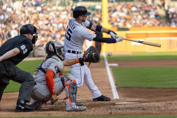 Detroit evened things up in the fourth. Kerry Carpenter hit a one-out single, stole second and scored on Meadows’ single to right.