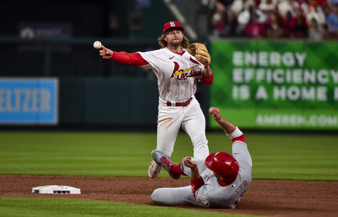 St. Louis’ Tommy Edman drew a one-out walk in the seventh inning off reliever Jeff Hoffman. Edman stole second base, but Nolan Gorman lined out and Goldschmidt grounded put to strand the runner.