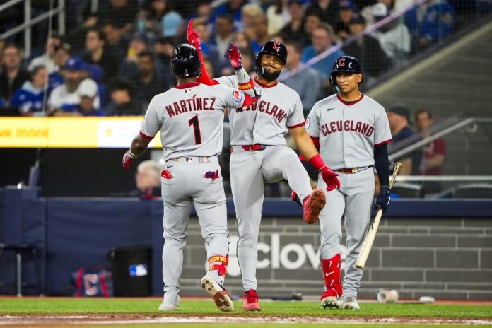 Angel Martinez launched a pair of two-run home runs Friday night and the visiting Cleveland Guardians held on to defeat the Toronto Blue Jays 8-6.