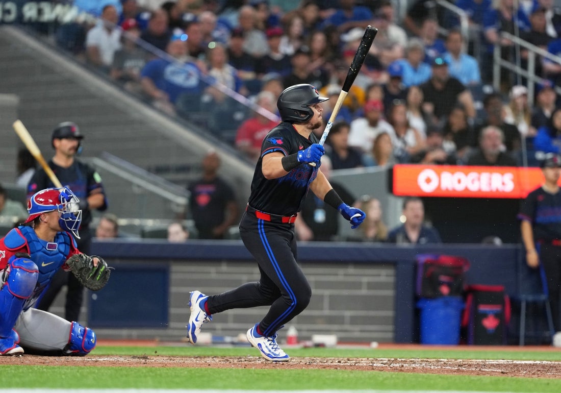 Bo Bichette grounded an RBI single to left. Another run scored when shortstop Zach Neto flubbed Addison Barger’s potential double-play chopper for an error.