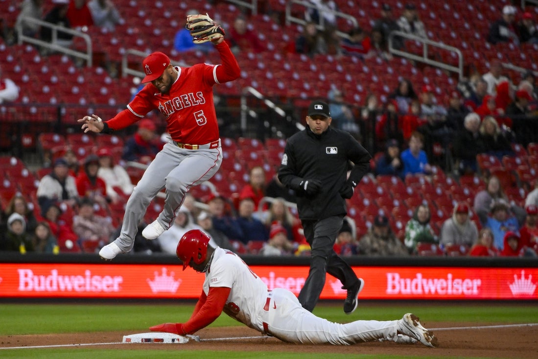 He is batting .190 (4-for-21) with two doubles and four RBIs in eight games in his first season with Los Angeles.