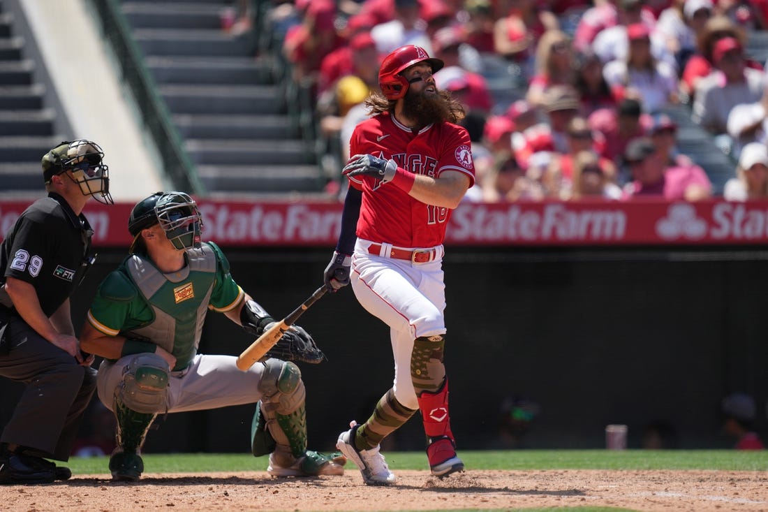 The Angels scored immediately against A’s starter Cole Irvin (2-2), with Ohtani leading off and hitting Irvin’s second pitch of the game over the fence in right-center for his ninth homer of the year and a 1-0 Angels lead.