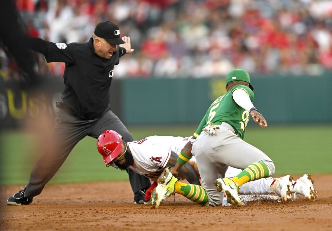 Anthony Rendon followed with a walk before Drury tripled home both baserunners. On the play, A’s center fielder Esteury Diaz charged Drury’s sinking line drive and made a diving attempt, but the ball skipped past him and went to the wall.