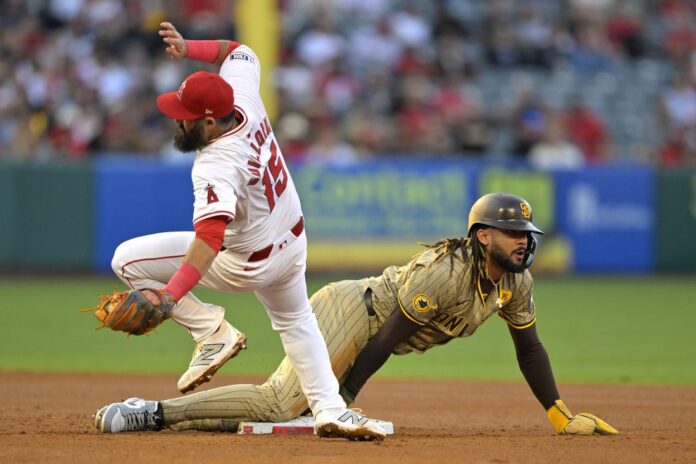 San Diego threatened to come back in the eighth, as Fernando Tatis Jr. and Manny Machado began the inning with back-to-back singles off Angels reliever Luis Garcia. Garcia struck out the next two batters before Jake Cronenworth singled home a run, cutting the Padres’ deficit to 4-2.
