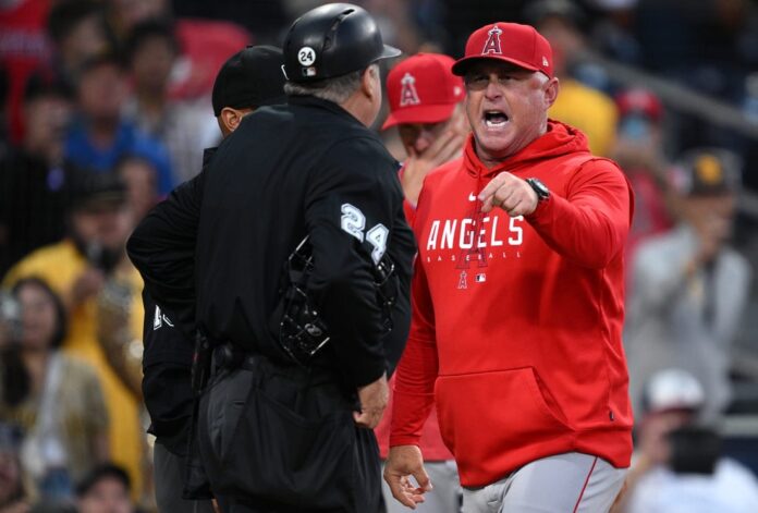 Nevin was visibly upset over a called third strike on Michael Stefanic in the top of the ninth inning of Los Angeles’ 4-1 setback on Friday. Nevin confronted the umpires after the game, only to be restrained by Angels bench coach Ray Montgomery.