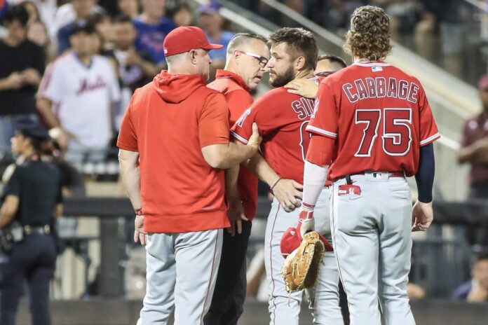 Silseth was injured on a play in which two Mets were on second base but Los Angeles catcher Logan O’Hoppe threw the ball to first. Angels first baseman Trey Cabbage then threw the ball to third after Francisco Lindor broke in that direction and Silseth was hit as he scurried to get in position to back up the play.