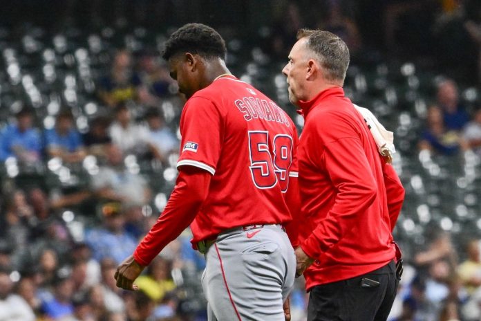 The Los Angeles Angels placed right-hander Jose Soriano on the 15-day injured list on Thursday, ending his season after he sustained a right forearm contusion from a line drive in Wednesday night’s loss to the host Milwaukee Brewers.