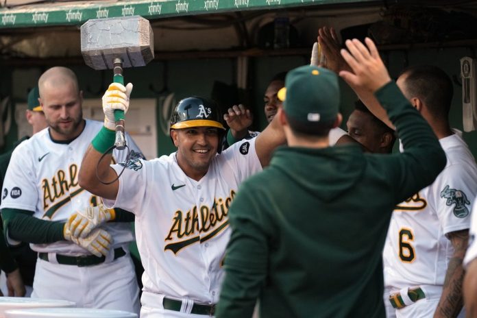 A JJ Bleday walk and Aledmys Diaz double set the stage for the big inning, which produced its first two runs on Shea Langeliers’ RBI single and Jace Peterson’s sacrifice fly.