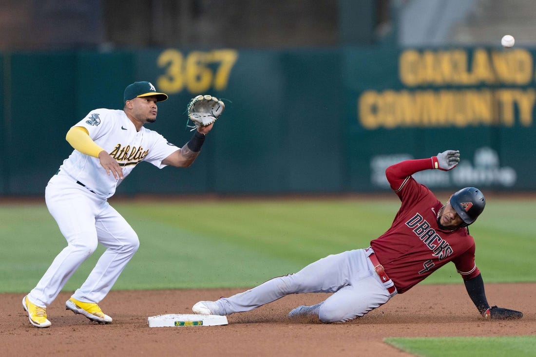 Esteury Ruiz’s line drive short-hopped off the glove of Arizona Diamondbacks shortstop Nick Ahmed for a walk-off single in the 12th inning Tuesday night, allowing the host Oakland Athletics to snatch a 9-8 interleague win.