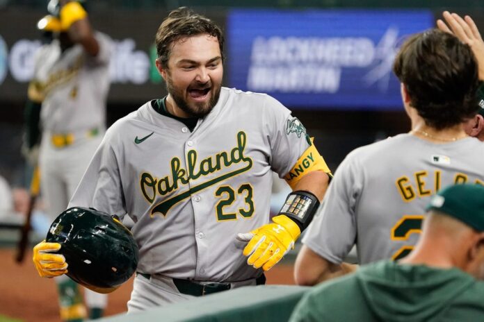 Oakland won the series opener against Texas 4-3 on Tuesday on the strength of Langeliers’ three homers, including a two-run go-ahead blast in the ninth off Rangers closer Jose Leclerc that proved to be the game-winner.