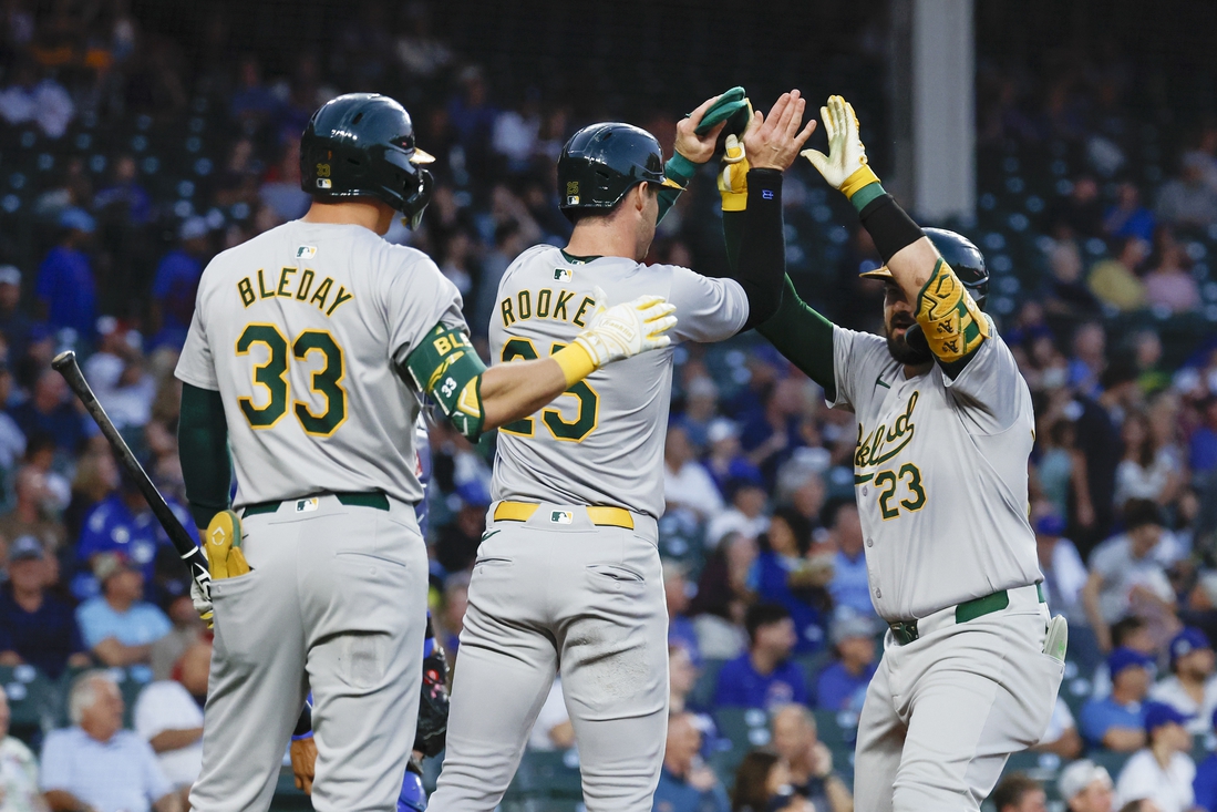 Shea Langeliers hit two home runs and had three RBIs to help the visiting Oakland Athletics to a 4-3 win against the Chicago Cubs on Tuesday night.