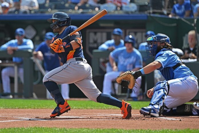 The Astros maintained their 4-1 lead in the fifth inning when left fielder Michael Brantley threw Porter out at the plate on Maikel Garcia’s two-out single.