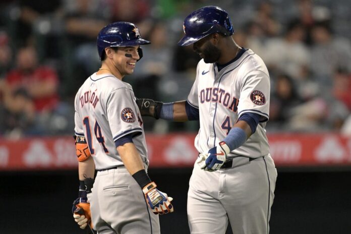 Yordan Alvarez homered and doubled to lead the Houston Astros to a 6-1 victory over the Los Angeles Angels on Saturday night in Anaheim, Calif.