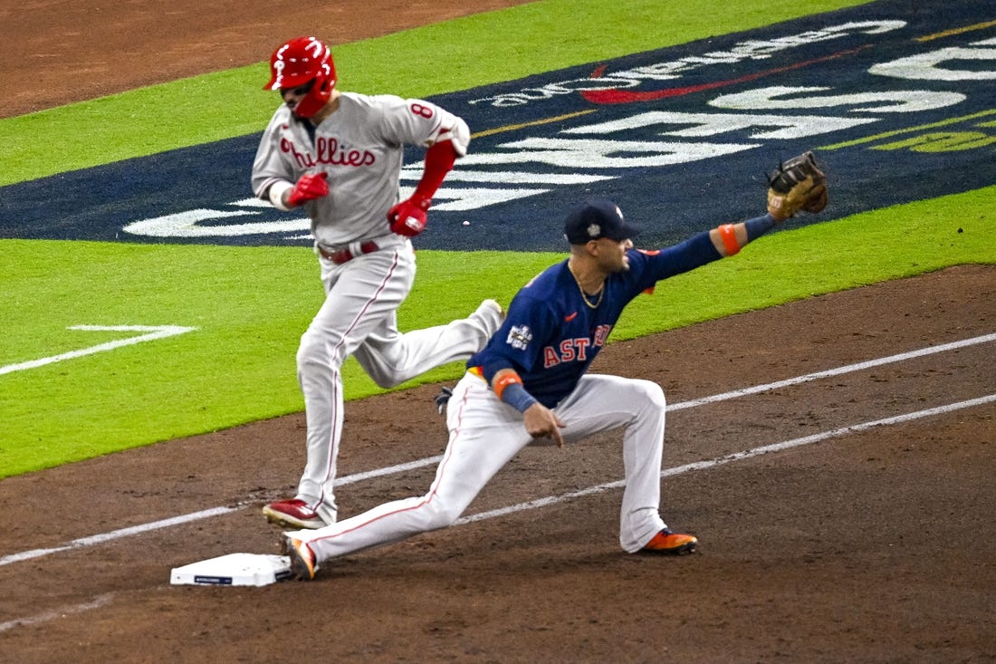 Houston became the first team in World Series history to open a game with three consecutive extra-base hits as Jose Altuve, Jeremy Pena and Yordan Alvarez doubled in succession to spark the Astros to a sudden 2-0 lead.