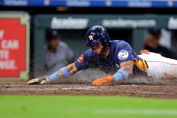 The Astros rallied against Twins closer Jhoan Duran for a second consecutive game, pulling even in the ninth when Victor Caratini hit a sacrifice fly to left that scored Jeremy Pena, who walked to lead off the frame. With one out, Pena stole second base and advanced to third on a Jose Altuve infield single.