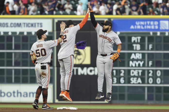 With their 3-1 interleague victory at the Houston Astros on Tuesday, the Giants (4-1) guaranteed they will enter their home opener this weekend against the Seattle Mariners with a winning record.